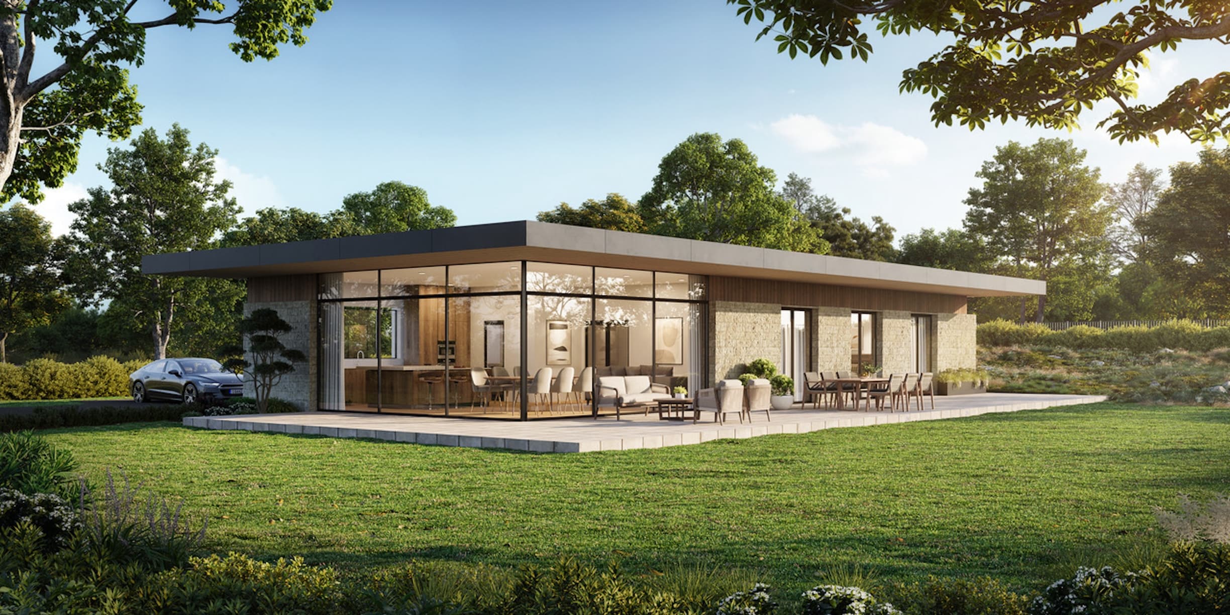 The unique design by Coleman Anderson Architects makes the most of the uninterrupted views plus the west-facing garden. The Kentish ragstone walls, Corten steel roof and slim, aluminium windows combine to deliver a striking, contemporary dwelling, but one that is sympathetic to the rural setting.